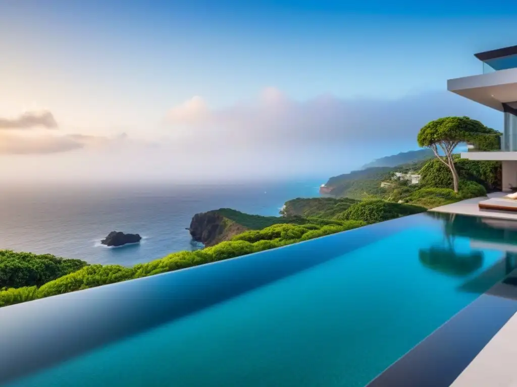 Residencial de lujo con impactante diseño arquitectónico en entorno natural exuberante al atardecer